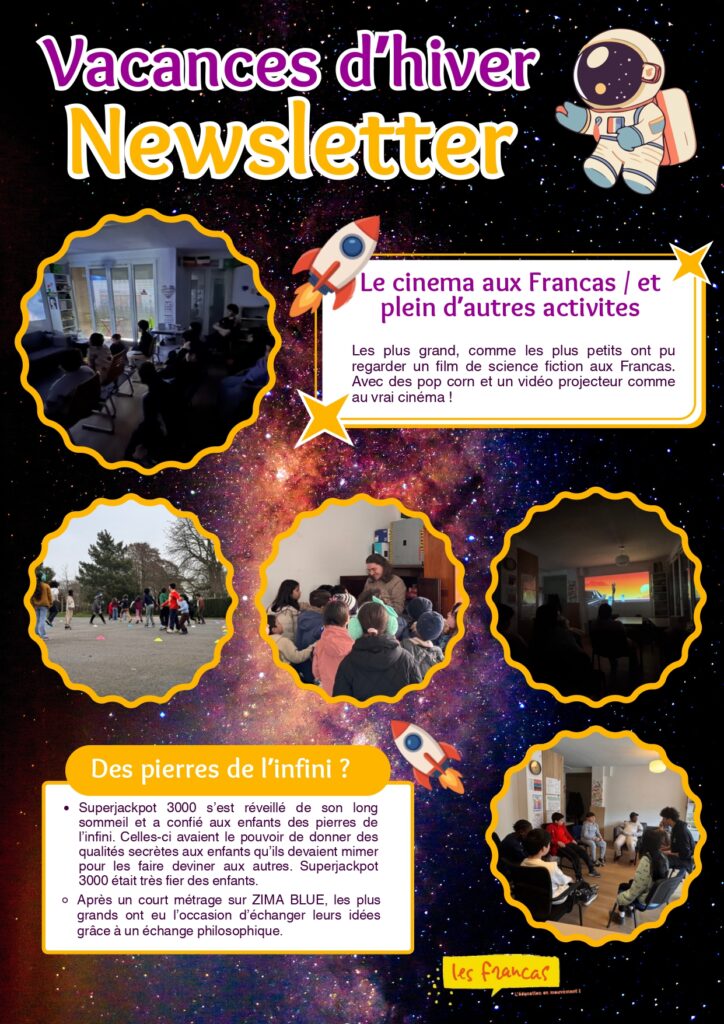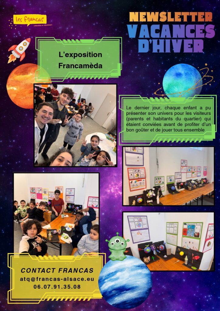 Retour en images sur les vacances d’hiver avec ATQ Auteur/autrice de la publication :admin Publication publiée :7 avril 2026 Post category:Anim' ton quartier / Les Francas 67 Étiquettes: animation, atq, enfants, vacances, vacances scolaires Please Share This Partager ce contenu Ouvrir dans une autre fenêtre Ouvrir dans une autre fenêtre Ouvrir dans une autre fenêtre Ouvrir dans une autre fenêtre Ouvrir dans une autre fenêtre Ouvrir dans une autre fenêtre Ouvrir dans une autre fenêtre Ouvrir dans une autre fenêtre Ouvrir dans une autre fenêtre Ouvrir dans une autre fenêtre Read more articles Article précédentActivités enfants pendant les vacances d’hiver aux Francas ! Vous devriez également aimer Newsletter Toussaint d’Anim’ ton quartier 12 janvier 2026 Où retrouver ATQ en 2026 21 janvier 2026 Festival Graines de Philo du 8 avril 2026 26 février 2026